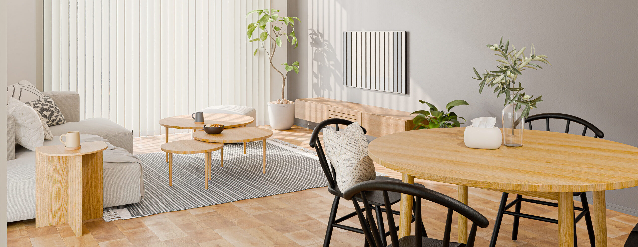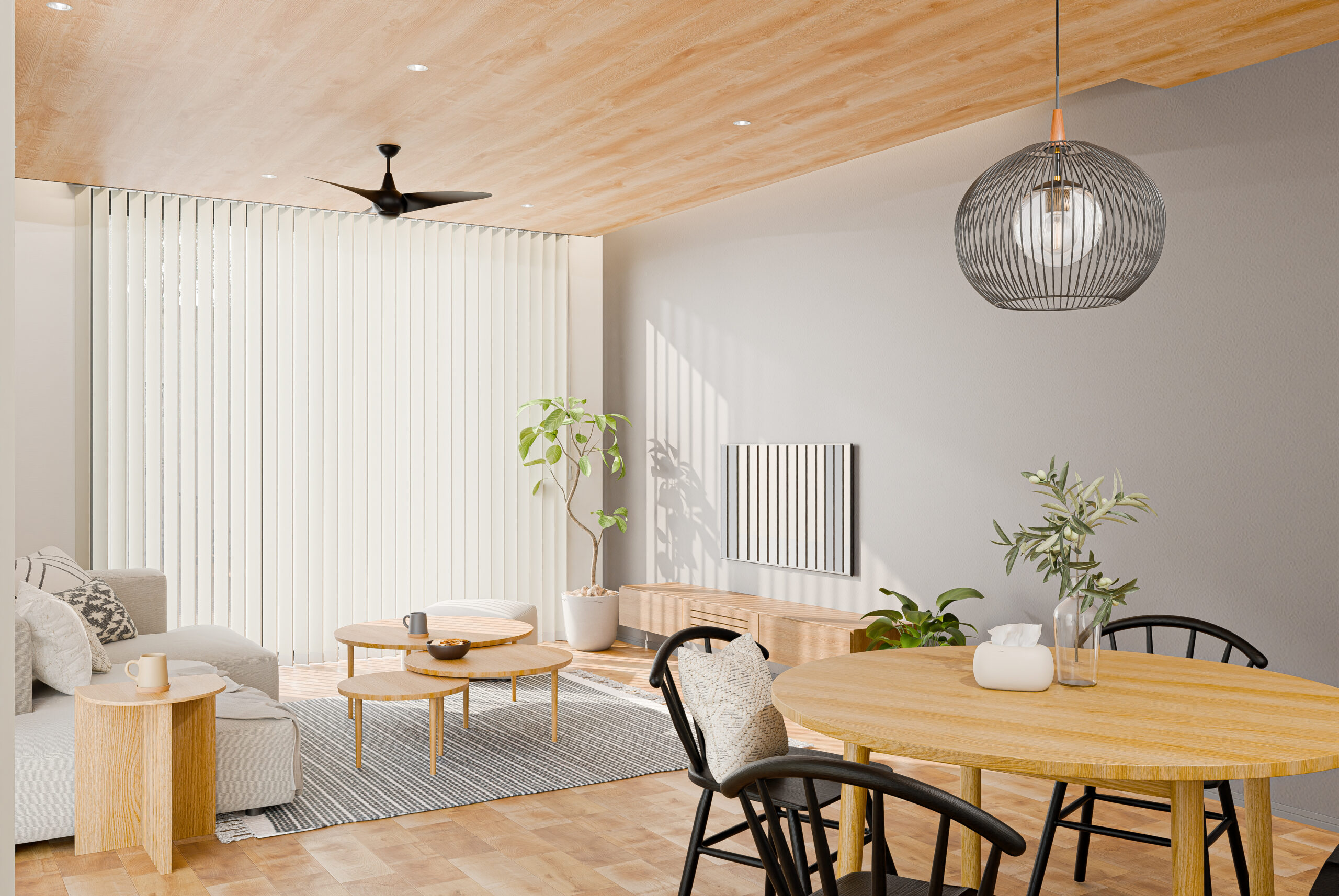 実在する家具メーカーと連携して作成した3DCGデータを活用し、現実の空間を再現する高品質なバーチャルステージングを提供しています。お客様が「完成後の空間」や「理想の暮らし方」をイメージできる世界を実現します。