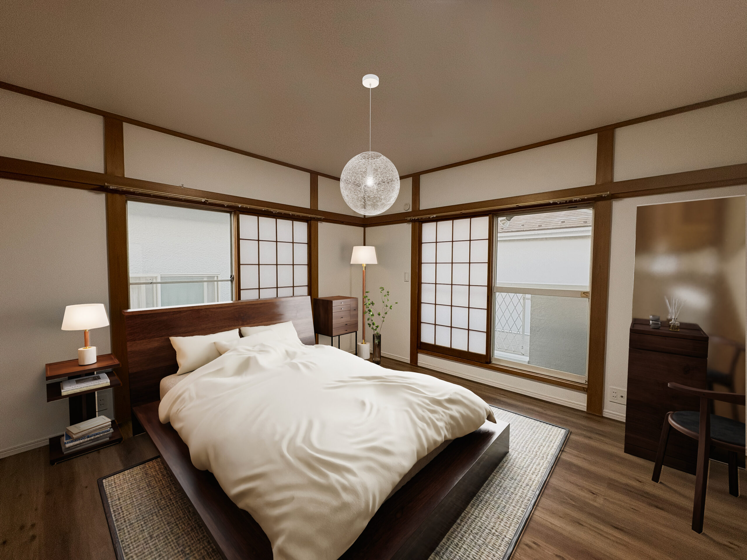 専任の3DCGエンジニアが手作業で制作し、光・質感・構図などの美しさに加え、部屋と家具それぞれのサイズを計算し、家具のレイアウトや生活動線も考慮して制作します